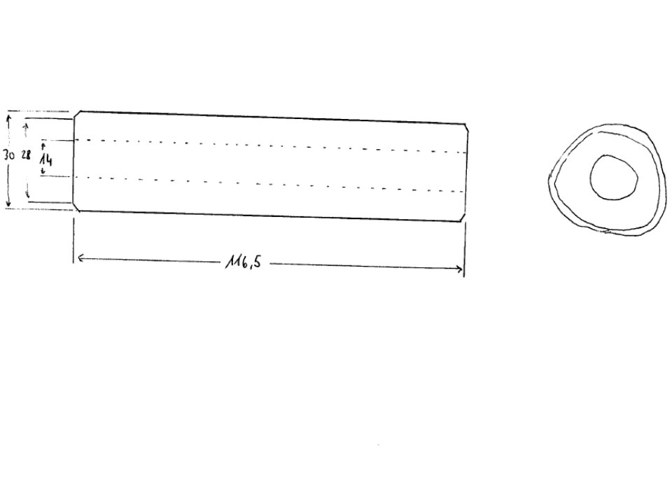 Also mal eben die Breite des alten Motorblocks ausgemessen, ne Zeichnung gemacht und in Ermangelung einer Drehbank einen netten Menschen gesucht, der mir die Welle passend dreht.